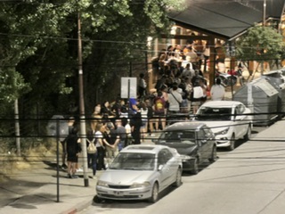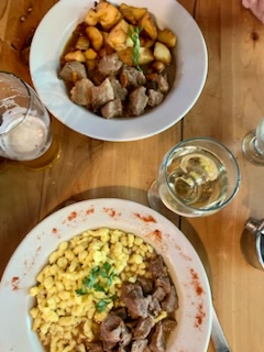 Lunch at Gilbert’s: boar stew, goulash with späetzle, beer & wine