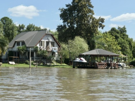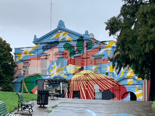 Our out-of-town excursion involved a bus to the central train station, then a 90-minute train to Tigre, 30 km away, and outside BA. It is the gateway to a labrynth of islands and canals that make up the Paraná delta. The Rio del Plata (Plate River) references the shape of these islands that have depressed centres (photos will show why this matters). This region is full of stilt houses, old mansions, rowing clubs, wood crafters, floating markets and restaurants accessible only by boat. Many holiday homes are shut for the season but there are also many permanent residents that we dubbed the “river people.” Everything is accessed by boat, including shopping, school, church, and community activities. Health care, dentistry, libraries, water and fuel services are delivered by boat rounds. We took a 75-minute boat tour only to discover the results of a recent strong storm and felt like we were travelling through the Louisiana bayou. Back in town, a 40-minute walk to the Naval Museum (which was closed on a weekday) highlighted the urban flooding challenges that were cutting people off from accessing their homes & businesses.