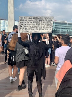 a. Puente de La Mujer (Women’s Bridge): opened in 2001, a footbridge named so due to the numerous streets in the area with women’s names; according to the architect it is a stylized representation of the tango. We were there amidst a mass event that was one of the city’s events in honour of International Women’s Day that ran all through March. This day appeared to be a fundraiser for an arts centre where people came dressed in black or white, bought stickers, and gathered on the bridge listening to dolcet tones of music on loudspeakers, many meeting others to hug, laugh, reflect, and comfort each other. M was trying to figure out what was going on. S was somewhat uncomfortable making his way through the throngs but was mollified by a beer at the Temple bar on the other side.