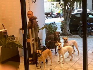 c. Perros: in most parts of Argentina, street dogs are over-abundant. In the city, we saw none. BA is known for its dog-walkers, often with a dozen or so in their charge. As so many people live in urban apartments, dogs happily observing passers-by are seen in window wells.