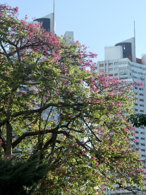 d. Modern high rises amidst historic buildings; our rental apartment with rooftop lap pool (a win for M!)
