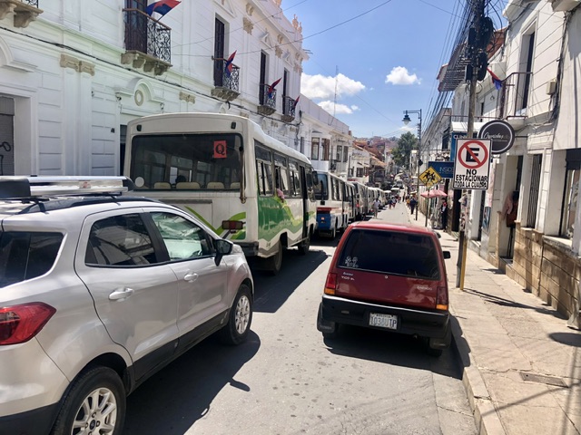 When a booked bus from Uyuni to Sucre went awry, dropping us off at the wrong transfer station in Potosí, we had to resort to negotiating a taxi, something that one is ill-advised to do. Sometimes you have to have faith and for good measure, S took pics of the license plate and sent it home. We were somewhat reassured when the driver recorded our names & passport numbers on what looked like an official form. Later we realized that he needed this info for highway control/toll centre to leave the city. Phew! It was a 2.5 hour wild ride through a very mountainous road, often narrow, often pitted, and where our ‘rules of the road’ simply do not apply.