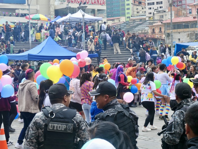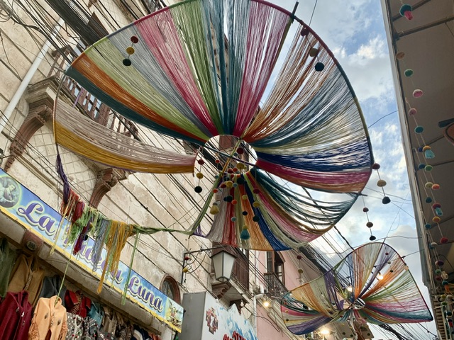 Sucre is the constitutional capital, where the Supreme Court is established, and where the Declaration of Independence was signed 200 years ago. Known as “the white city,” its old town is a UNESCO World Heritage site for its preservation of colonial buildings and churches dating back to the 16th Century. We stayed in a wonderful traditional B&B about a block and a half off the main Plaza 25 de Mayo, which was the locus of the Bicentennial celebrations consisting of music & dance, rallies & protests. Sucre is also the chocolate capital of Bolivia (yes! it was awesome to peruse the selections each evening). Amidst the colonial heritage, we found modern shops, cafés, and restaurants behind the surfeit of elderly ladies selling produce on the narrow sidewalks.