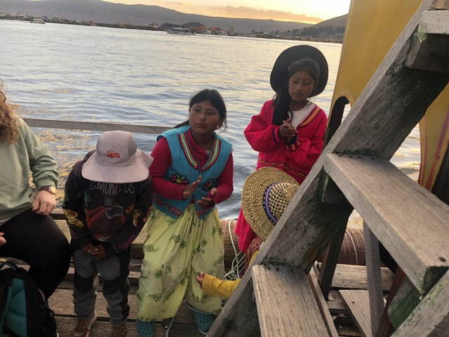 A 30-min boat ride from Puno harbour lies the Uros community: about 1500 residents that live on approximately 145 islands made of reeds. Tourism is now their main form of income as the boat tours visit different islands on a rotation system. Our short tour included a demonstration of how the plant material is used to create the floating islands, as well as many of the houses and structures on them. While the reed island people have been around a long time, self-sustaining on Lake Titicaca, the modern community has harnessed the power of tourism, with their main mission to collect dollars by pressure-selling their wares, giving rides in a reed boat, and encouraging their children to sing for donations. While we enjoyed the history and seeing the traditions up close (and the preservation of the local language), we felt very ‘tourist-trapped.’