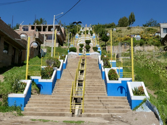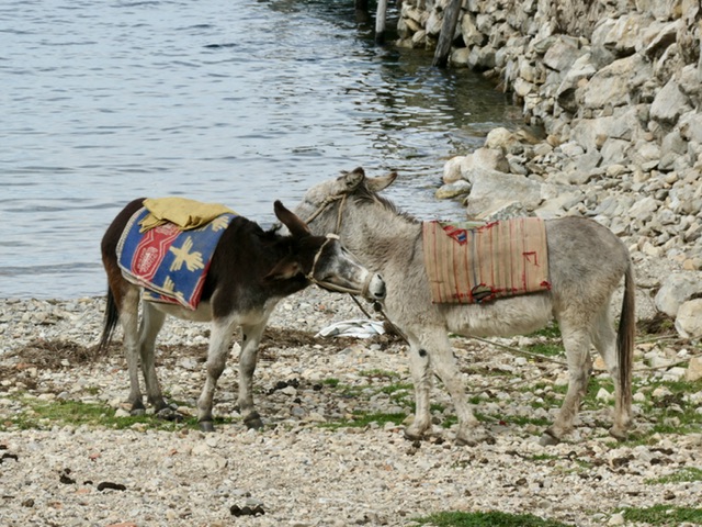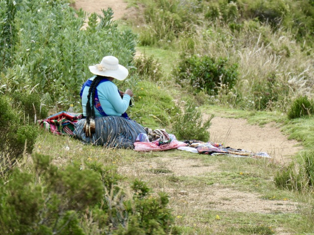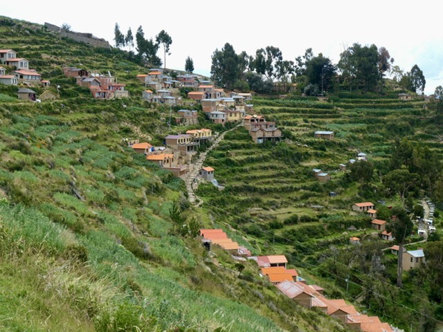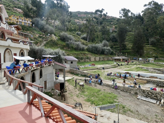More importantly, this is the access point to and from the islands and we had booked a 4-hour excursion to Isla del Sol. It is the most inhabited island and also the most visited by tourists. We were dropped off in one port and took the option of hiking about 45-minutes over a high ridge and down a long flight of Inca stairs to another port. This was high-elevation hiking as Lake Titicaca is at 4000 metres above sea level. The island is lush; the Yamani people are proud of their work and their homes; and there are homestays and rooms available for those who might want to visit longer. We saw the remains of the Sun Temple and the activities of daily life (work & play), burros on steep paths, and a gentle hubbub in the port area. We could not avoid drawing comparisons to Santorini (Greece).