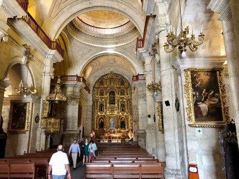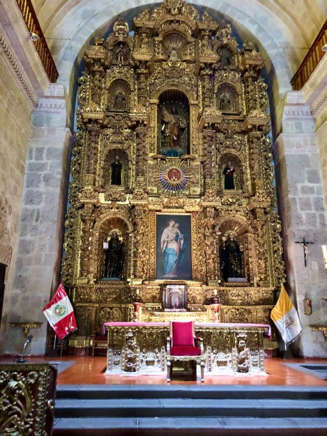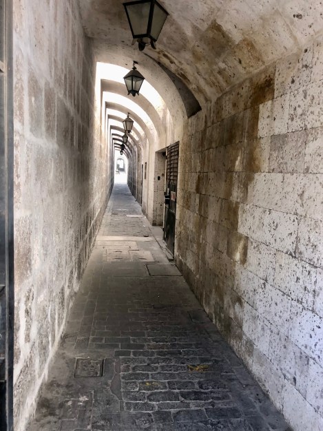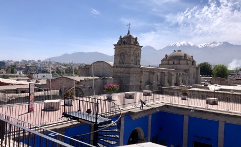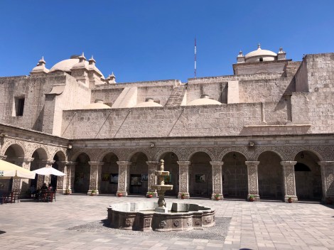 A very rough overnight bus took us from Puno to Arequipa, the second largest city in Peru. A UNESCO city surrounded by 3 important volcanoes and the access city to the Colca Canyon (2nd deepest in the world and prime viewing for Andean condors). Unfortunately, in the evening prior to the bus departure, we both came down with colds, and M’s version was bronchitis. By the time we arrived in Arequipa, our plans were scuttled in favour of recovery given the big trek coming up. M never left the apartment while S found medications and was able to take in a walking tour.
