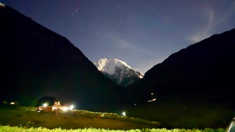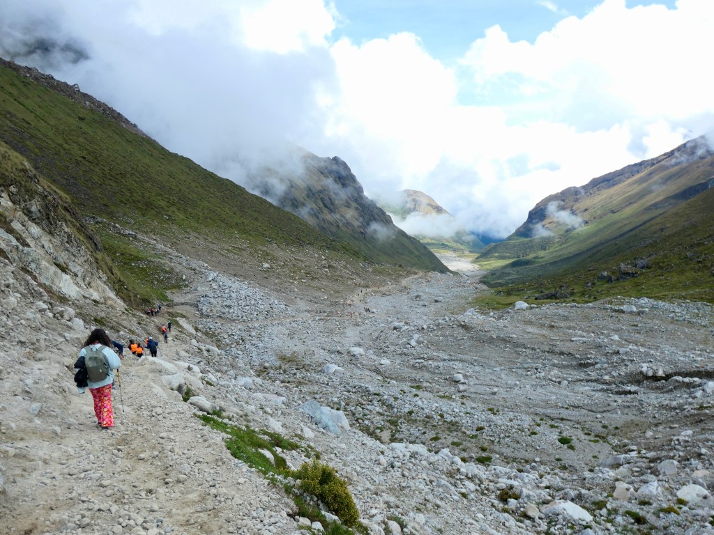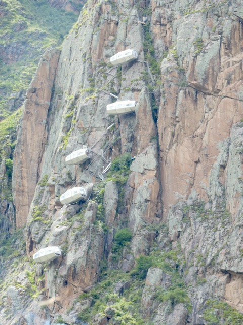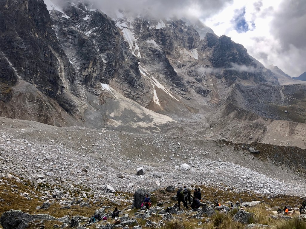 Day 2: A very challenging 25km trek through the Salkantay Pass at 4630m elevation; some of us used the horse option for the first 6 km which made the looong, loose-rocked downhill stretch bearable, ending at Mountain Sky View dome cabins, in Collpapamba @ 2950m elevation (a treat with hot showers ensuite & real bed linens).