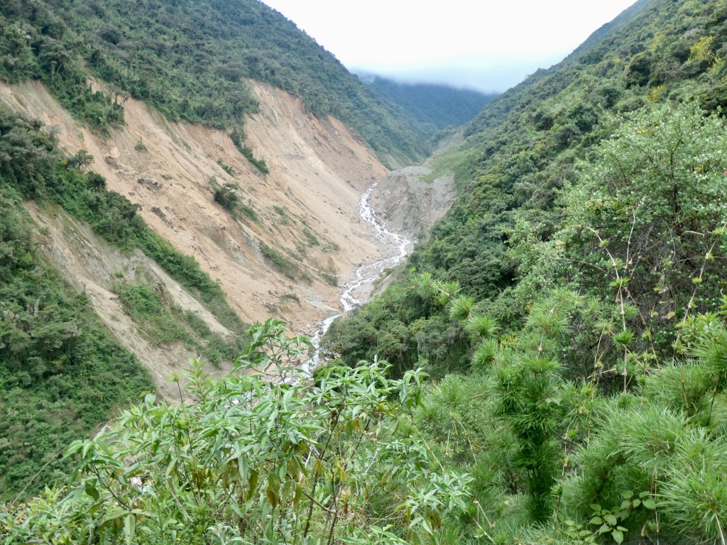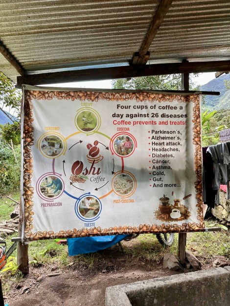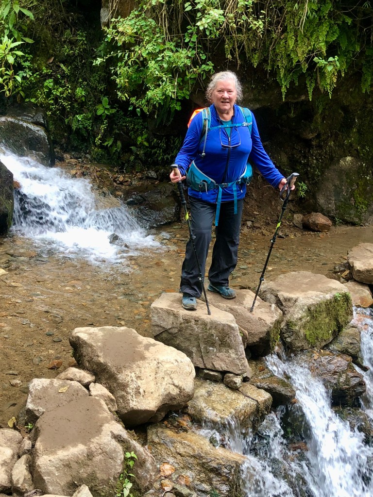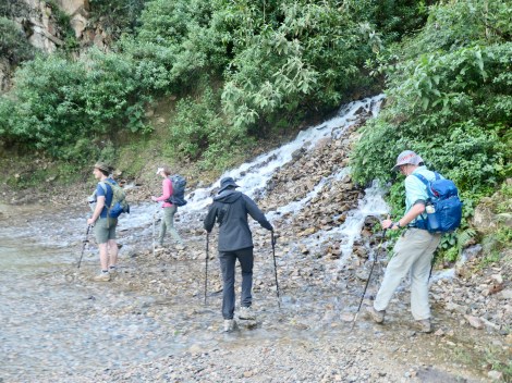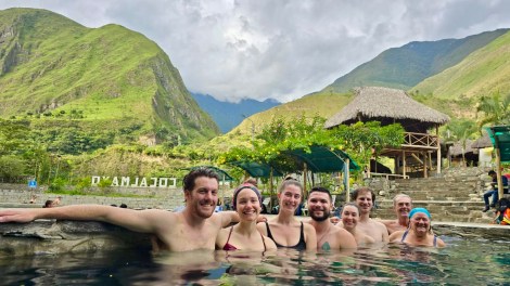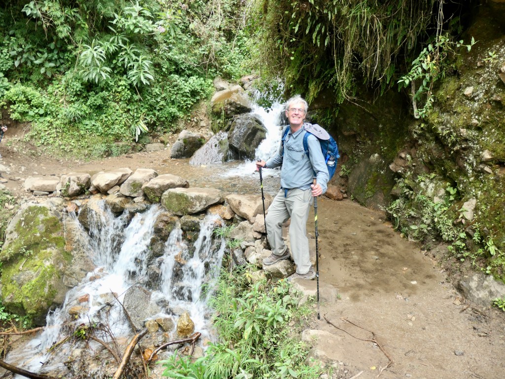 Day 3: Having descended into the high jungle the previous afternoon, this was a moderate 18 km trek that included mud, river crossings, fruit farms, a coffee plantation, and in the afternoon, a shaky drive to lovely hot springs at Cocalmayo, about 90 minutes away. We stayed in Lucmabamba Jungle Domes (2000m elevation).