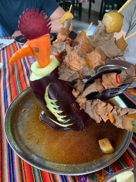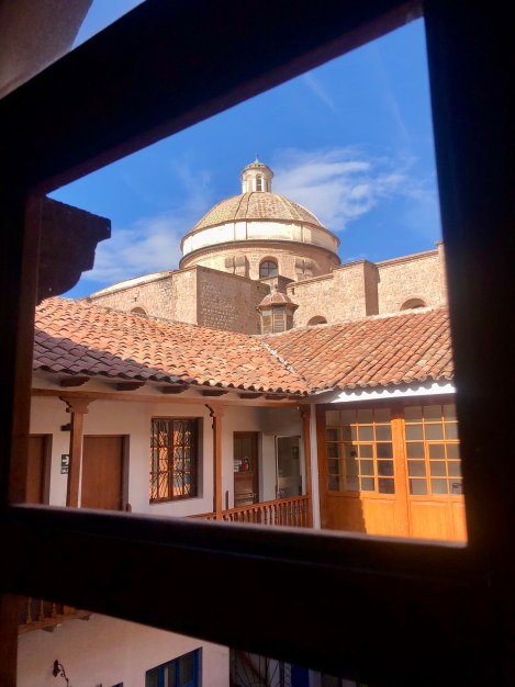 We had five days in Cusco where E & K joined us. As Peru’s 3rd largest city, Cusco has a population of over a million people that are spilling into the hills surrounding Cusco. With one road in, the infrastructure lags and life happens all over the crowded streets. The old centre is a UNESCO site; interesting because the whole area surrounding the city is a series of heritage sites, all central to the Inca empire. We were in an apartment on the 5th floor which, without an elevator, offered us more breathless climbing as well as a view over Cusco (first pic).