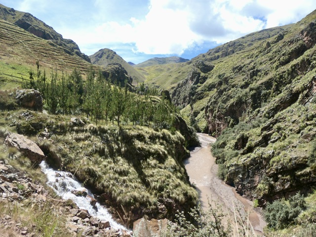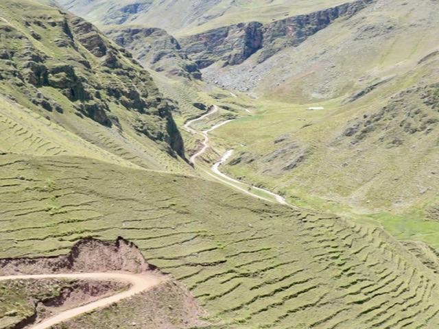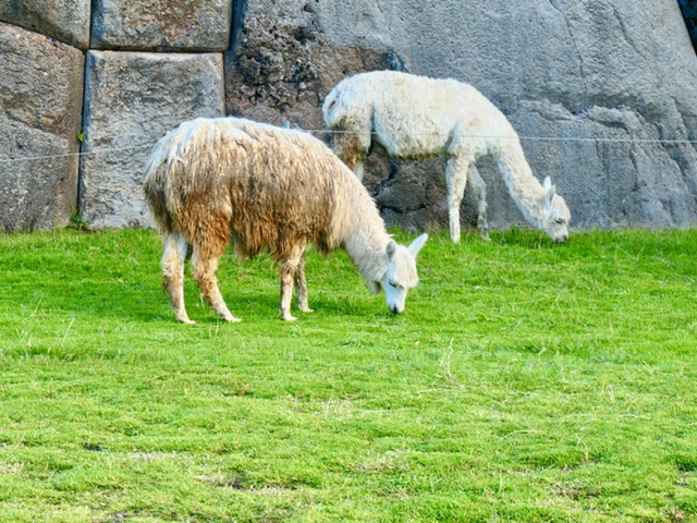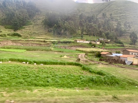Another long (13-hour) bus took us from Arequipa to Cusco. While the road is rough, with steep ascents out of Arequipa, the valley towards Cusco became progressively more fertile, with many farming towns and beautiful views of the terraces of quinoa, corn, potatoes, and grazing cows, sheep, llamas, and alpacas (and water buffalo).