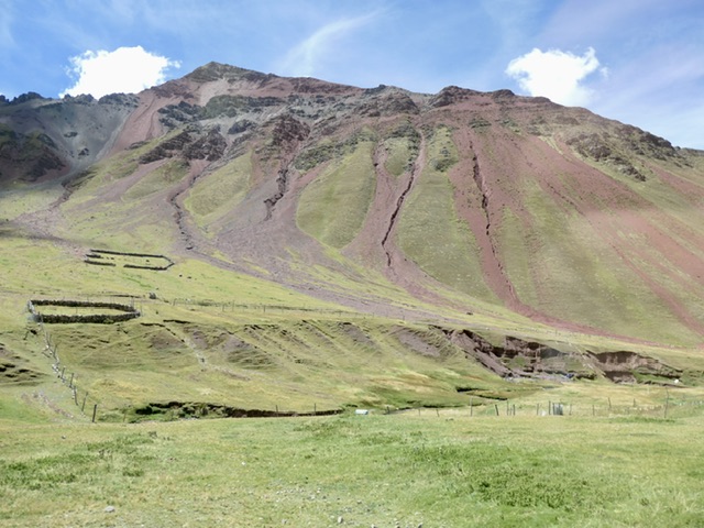 K managed to locate a private driver to take us to Rainbow Mountain at a reasonable hour (tour groups leave at 3:30 or 4:00 am !). It is a an almost 4-hour drive each way, on narrow winding mountain ‘roads’ and through small, rural communities and beautiful valleys. As a college-trained and seasoned tour guide, our driver proved to be a wealth of knowledge about the area and the Quechua people.