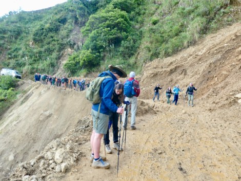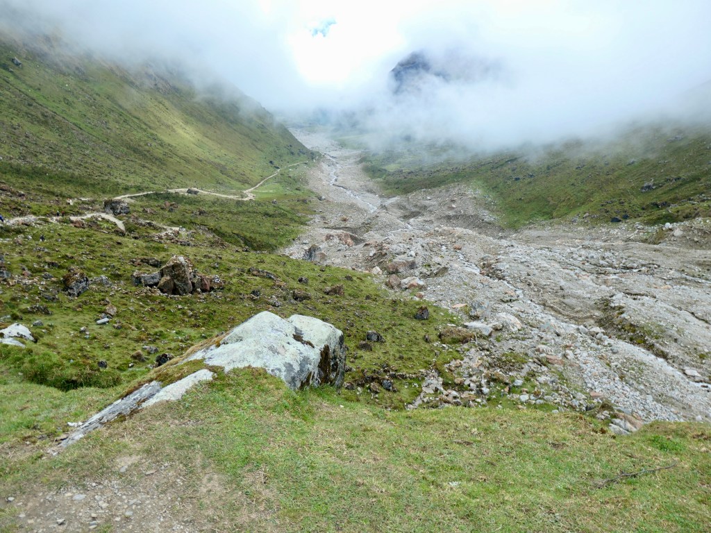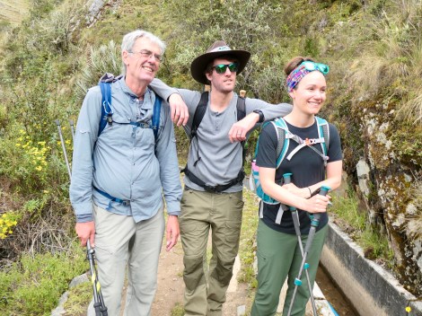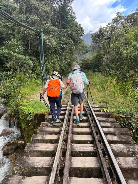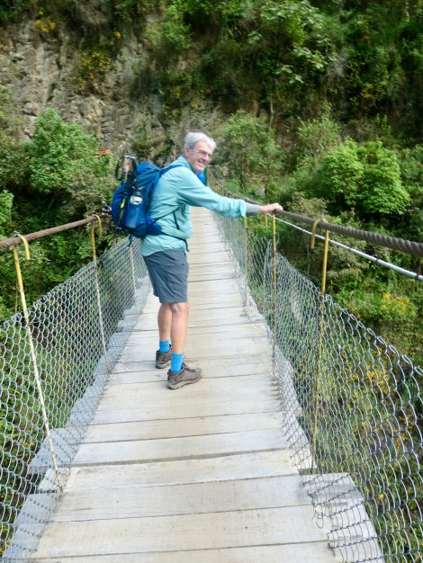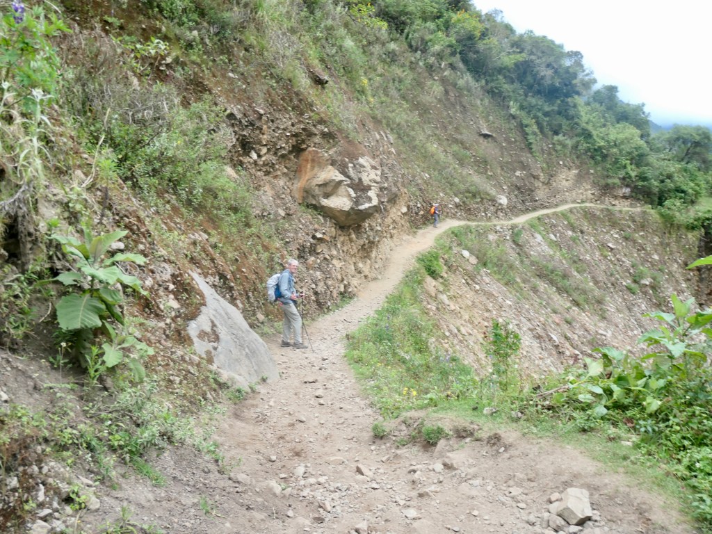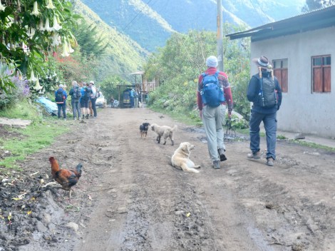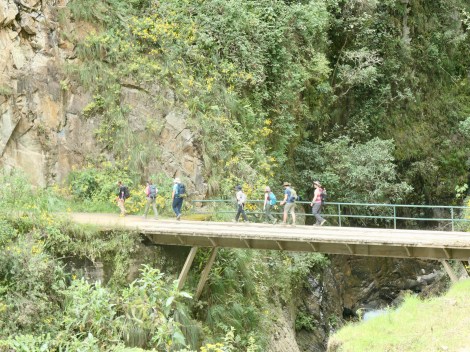 Day 4: The original plan called for a 15km trek through the Llactapata Pass (2800m) and down to Hidroelectrica where we would catch the train to Aguas Calientes (and our hotel). The recent landslides eliminated the train so we would have to hike the additional 12km. The pass was also risky due to potentially slippery mud sections on the downhill. S & M, in the quest to avoid injury, used the bus option to get us past this section to our rendezvous point at Aobamba. E & K chose to hike the pass.