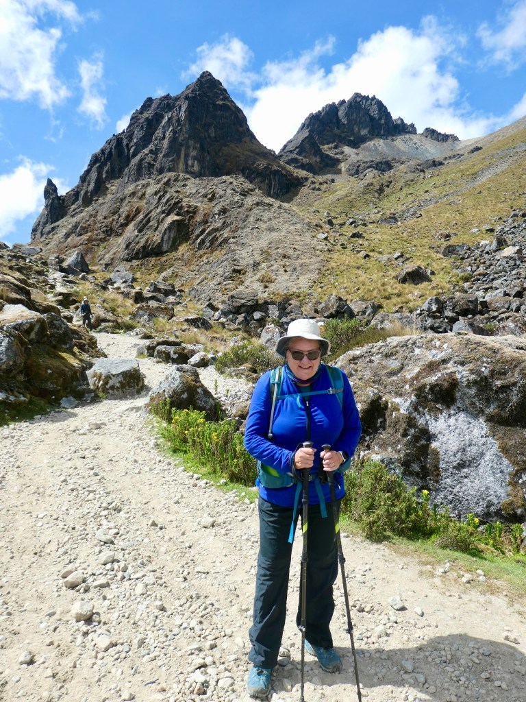 Day 1: Bright-eyed & bushy-tailed excitement at the start of a 7 km uphill trek to Sky Camp at Soraypampa, plus a 3km return climb to Humantay Lake, from 3800m to 4200m elevation. The night and next morning were very cold, where we slept in sleeping bags with a fleece liner, plus a heavy duvet, and toques.